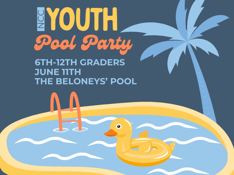It’s almost time for the summer pool party! Becky and Chuck are hosting the NCC Youth for a fun summer gathering this Wednesday, June 11 at 3:30 PM.