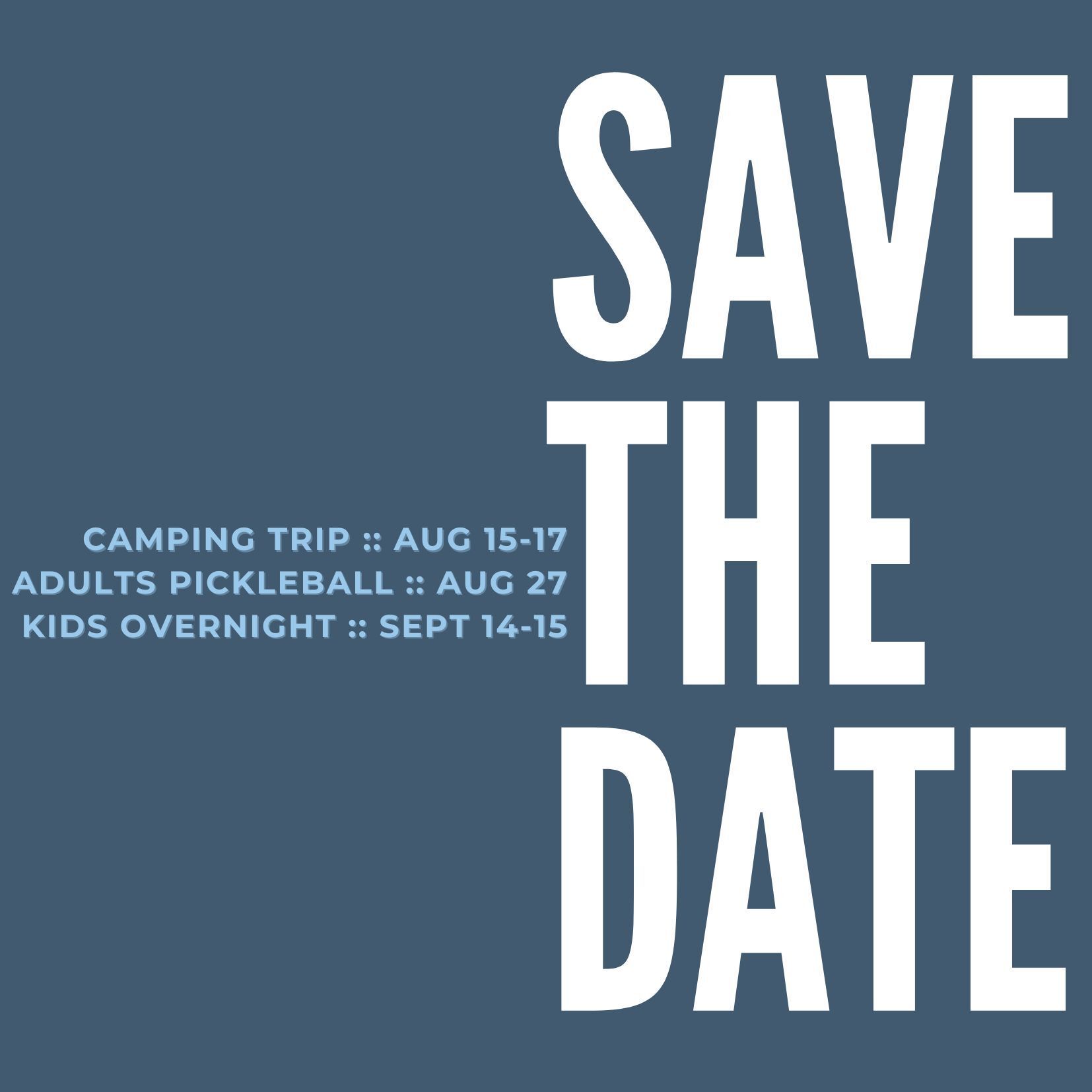 Save the Dates! Camping! Adults Pickleball! Kids Overnight!
