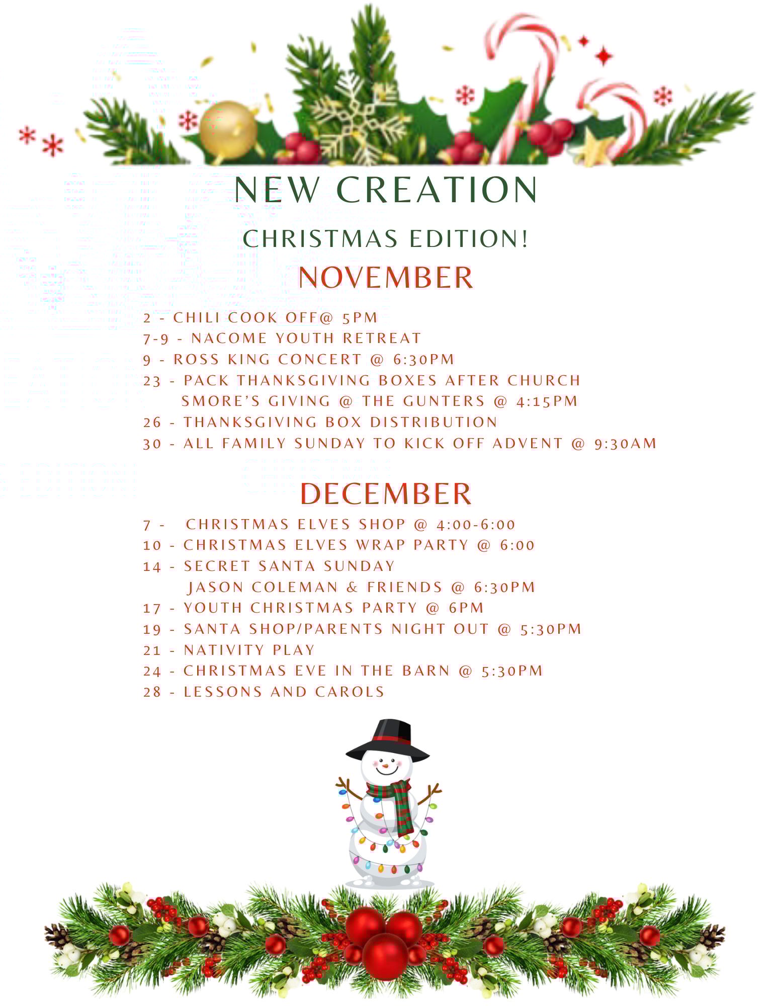 Please take a look at our new Christmas season schedule and save the dates! We have a wide ranging schedule of events planned for November and December! We know it’ll be a holly, jolly season filled to the brim with joyous events!