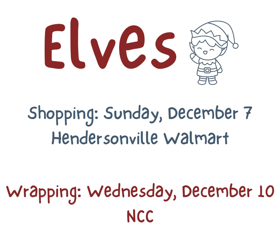 🎁 If you would like to help shop for families for Christmas, meet at Hendersonville Walmart at 4 PM Sunday, December 7. Sign up on the clipboard or let Pastor Keith know if you’re planning to help.